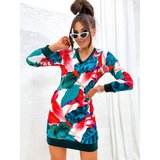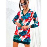 Beautiful women's dress made of pleasant fabric a'la velour with original pattern. The product of mini length, has long sleeves. An interesting proposition for every day!