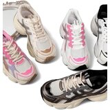 Women's platform sneakers a perfect combination of style and comfort. The footwear is made of ecoleather and fabric. Laced model, features a fabric insole. Ideal for active individuals!