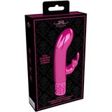 Majhen, a zmogljiv, super svilnat vibrator na dotik, ki je pravi kraljevski dragulj! Zakaj je dober? Idealen za ženske, ki lahko dosežejo orgazem le s stimulacijo vagine in klitorisa skupajRahlo ukrivljena oblika popolnoma se prilega ženski točki GKoži prijazna, prilagodljiva oblika lepo se prilega in jo lahko uporabljajo občutljive ženskeMajhna velikost še posebej priporočljivo za začetnice!Izjemno preprosto upravljanje z enim gumbom10 načinov vibriranja naj vas velikost ne zavede, motor zagotavlja izjemno močne vibracije!100odstotno vodoodporna zasnova v dražljajih tega kraljevskega bisera lahko uživate tudi v kopeli ali pod tušem!Vgrajena baterija ni vam treba skrbeti za baterijeTiho in diskretno delovanjeEkskluziven videz ročaj se blešči, je posut z drobnimi kamenčki in se celo prižge videti, kako se pod pokrovom noči sveti ustvarjalec užitkov, je vznemirljiv pogled! Oglejte si to: Za mazanje izdelka uporabljajte samo lubrikant na vodni osnovipred vsako uporabo in po njej temeljito očistite in razkužitePri shranjevanju poskrbite, da izdelki ne pridejo v stik drug z drugim ali drugimi izdelki Kako uporabljati: Po mazanju vstavite vibrator v nožnico z roko za stimulacijo klitorisa navzgor in obrnjeno proti vam. Najprej se igrajte z majhnimi gibi noter in ven, nato pa prodrite v celoti in nastavite vzvod za zajčji klitoris, da se lepo nasloni na sramno grudo. Če želite intenzivnejšo stimulacijo klitorisa, poskrbite, da razmaknete sramne ustnice, tako da bosta vzvod in zajčja ušesa v neposrednem stiku z vašim klitorisom. Nato lahko vibracije spreminjate po želji. Upravljanje: Izdelek ima en sam gumb na dnu okrašenega ročaja. Vklopite in izklopite ga tako, da ga držite pritisnjenega. Načine vibriranja lahko preklapljate s pritiskom in držanjem gumba. Priključen je polnilni kabel: Polnjenje izdelka je zaradi priloženega magnetnega kabla USB izjemno enostavno. Polnilna vtičnica se nahaja na spodnjem delu blazine (poleg gumba za vklop) in ima dve majhni kovinski točki. Vsebina paketa: 1 vibrator.1 kos magnetnega kabla USB za polnjenje (najdete ga na dnu škatle z odstranjeno gobico). Specifikacija izdelka, značilnosti: vrhunska obdelavausnju prijazen materialanatomska oblikavibracijski motor10 načinov vibriranja100odstotno vodoodporna zasnovaenostaven za čiščenjevgrajena litijeva polimerna baterijačas polnjenja: 120 minčas uporabe: 60 minEnostavna uporabatiho delovanje: največ 46 dBZačetna velikostskupna dolžina: 11,7 cmnajvečji premer: 2,5 cmdolžina za vstavljanje (do ročaja): 6,5 cmdolžina ročice: približno 4 cmpremer ročice strgala: največ 1,7 cmteža: 64 gbarva: rozamaterial: ABS, silikon (v skladu z zahtevami EU, brez ftalatov)Predlog za čiščenje: Pooblaščeno orodje: temeljito operite z blago milo mlačno vodo, sperite in pustite, da se posuši. Priporočamo: uporabite posebno čistilno sredstvo (06302500000) na voljo ločeno.