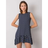 RUE PARIS Navy blue women's dress with polka dots. washing method: machine wash at 30CThe model is wearing a size S. Model's measurements: height 180 cm, bust 89 cm, waist 63 cm, hips 93 cm. Measurements of the dress in size S measured flat: width under the armpits 46 cm, total length 87 cm
