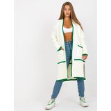 Ecrugreen oversize cardigan with pockets RUE PARIS . Product code: LCSW0340.42PDominant pattern: plainStyle: Casualoccasion: casual, city, walk, work The model is wearing one size Model's measurements: height 163 cm, bust 86 cm, waist 56 cm, hips 88 cm. Dimensions of the one size cardigan measured flat: armpit width 60 cm, total length 99 cm, sleeve length 63 cm.