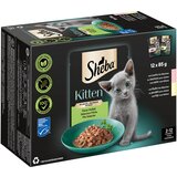 Sheba Kitten Varietten vrečke za ohranjanje svežine 12 x 85 g so popoln obrok za vašo odraščajočo mačko. Multi pakiranje vsebuje dve okusni vrsti z lososom in s piščancem v fini omaki, ki jo bo vaš mačji mladiček oboževal. Tako bo v posodi za hranjenje vaše mačke poskrbljeno za raznolikost. Okusna mokra hrana v praktičnih porcijskih vrečkah ne vsebuje dodanih umetnih barvil in konzervansov. Vitamin E lahko prispeva k normalnemu imunskemu sistemu. Visokokakovostne sestavine, minerali in vitamini zaokrožijo recepturo brez žit in vaš maček prejme točno tisto, kar potrebuje. S Sheba Kitten vrečkami za ohranjanje svežine 12 x 85g lahko svojo mačko razvajate točno tako, kot si zasluži. Sheba Kitten Varietten vrečke za ohranjanje svežine 12 x 85 g na kratko: Popolna hrana za odraščajoče mačje mladiče Dve okusni vrsti: z lososom in piščancem v fini omaki Uravnotežena in polnovredna: za vsakodnevno prehranjevanje Z vitaminom E: za podporo normalnemu imunskemu sistemu Primerno za občutljive mačje mladiče: hrana brez žit Trajnostni ribolov: hrana z ribami s certifikatom MSC Brez dodanih umetnih barvil Brez konzervansov Sheba Kitten Varietten vrečke za ohranjanje svežine 12 x 85 g: 6 x losos 6 x piščanec