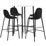 Barska garnitura 5delna blago črnaNaša barska garnitura z modernim in sodobnim dizajnom je popolna za moderne domove, vrtove, bare, pube ali restavracije. Čist in sodoben dizajn garniture se bo podal k dekorju v vsakem notranjem prostoru. Površina je izdelana iz mediapana, ki omogoča preprosto čiščenje. Prašno premazan jeklen okvir prispeva k stabilnosti in trdnosti barske mize. Gostilniški stoli imajo ergonomsko zasnovan sedež z integriranim naslojalom za hrbet v modernem, zaobljenem videzu. Garnituro boste zlahka sestavili. Naša barska garnitura je idealna za uživanje v požirku vina v baru, za prigrizek ob pultu ali pa za zagotavljanje dodatnih sedežev, ko imate na obisku goste. Paket vsebuje barsko mizo in 4 barske stole.Deine VorteileZ našo barsko garnituro lahko svojemu dekorju v trenutku dodate impresiven moderen pridih!Druge specifikacijeBarska miza:Barva: BelaMaterial: Mediapan s PVC premazom (površina) + prašno premazano jeklo (noge)Dimenzije: 60 x 60 x 111 cm (D x Š x V)Barski stoli:Barva: ČrnaMaterial: Obloga iz blaga in kovinske noge s prašnim premazomDimenzije: 51 x 49 x 99 cm (Š x G x V)Širina sedeža: 38,5 cmGlobina sedeža: 32,5 cmVišina sedeža, merjena od tal: 71 cmZ naslonjalom za nogePaket vsebuje:1 x Barska miza4 x Barski stolTkanina: Poliester: 100%Vsebina paketaBarska garnitura 5delna blago črna (1x)Gut to clearIhre Naročilo prejmete v 2 paketih. Upoštevajte, da so tukaj vsebovani podatki pakirani v skladu z vašimi željami. V nekaterih primerih pridem do zaključka, da je to mogoče storiti brez nadaljnjega odlašanja. Tisto jesen so ostale zapakirali s posebnim paketom. Najdete jih v