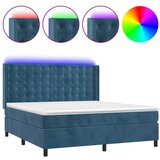 Box spring postelja z vzmetnico LED temno modra 180x200cm žametUporabite to box spring posteljo z vzmetnico in LED osvetlitvijo in uživajte v mirnem spancu! To bo osrednja točka vaše spalnice. Mehak žamet: Žamet je mehka in razkošna tkanina, ki jo prepoznamo po gostem kupu enakomerno rezanih gladkih vlaken. Žametna tkanina ima značilen mehak občutek, zaradi česar je prijetna na dotik.Praktično vzglavje: Vzglavje postelje je nastavljivo po višini po vaših željah. To vzglavje za posteljo vam zagotavlja odlično oporo za hrbet, ko sedite na postelji in berete ali gledate filme.Barvit LED trak: Vnesite igrivost v temo z barvitimi LED lučkami!Ležišče z žepkastimi vzmetmi: Vgrajena individualna žepkasta vzmet je znana po zelo visoki kakovosti, hkrati pa zagotavlja visoko stopnjo vzdržljivosti in prilagodljivosti. Lahko učinkovito absorbira hrup in udarce, ki jih povzročata metanje in obračanje.Koži prijazen nadvložek: Zaščita za ležišče ima trpežno in koži prijazno tkanino, zaradi česar je mehka in udobna. Opomba:Zaradi higienskih razlogov vzmetnice ni mogoče vrniti po odstranitvi ali odprtju embalaže.Režete lahko samo del s simbolom škarij in samo del z USB bo deloval kot prej.Vsakemu izdelku je priložen priročnik za enostavno sestavljanje.Izdelek ima priključek USB, vendar certificiran 5V vir napajanja USB ni priložen.Deine VorteileUporabite to box spring posteljo z vzmetnico in LED osvetlitvijo in uživajte v mirnem spancu! To bo osrednja točka vaše spalnice.Druge specifikacijePostelja:Barva: Temno modraMaterial: Žamet (100 % poliester), vezan les, inženirski les, trden macesnov lesCelotne dimenzije: 203 x 183 x 118/128 cm (D x Š x V)Vzmetnica za posteljo:Barva: Bela in temno