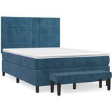 Box spring postelja z vzmetnico temno modra 140x190cm žametUporabite to box spring posteljo za uživanje v mirnem spancu! Ponuja maksimalno sprostitev in prijeten spanec. Mehak žamet: Žamet je mehka in razkošna tkanina, ki jo prepoznamo po gostem kupu enakomerno rezanih gladkih vlaken. Žametna tkanina ima značilen mehak občutek, zaradi česar je prijetna na dotik.Praktično vzglavje: Vzglavje postelje je nastavljivo po višini po vaših željah. To vzglavje za posteljo vam zagotavlja odlično oporo za hrbet, ko sedite na postelji in berete ali gledate filme.Ležišče z žepkastimi vzmetmi: Vgrajena individualna žepkasta vzmet je znana po zelo visoki kakovosti, hkrati pa zagotavlja visoko stopnjo vzdržljivosti in prilagodljivosti. Lahko učinkovito absorbira hrup in udarce, ki jih povzročata metanje in obračanje.Srednje trda opora: Posteljna vzmetnica odlično zagotavlja dodatno stabilnost in ravno pravšnjo stopnjo čvrstosti, ne da bi pri tem žrtvovala udobje. Zato je idealna za tiste, ki spijo na hrbtu ali trebuhu.Koži prijazen nadvložek: Zaščita za ležišče ima trpežno in koži prijazno tkanino, zaradi česar je mehka in udobna.Večnamenska klop: Ta klop lahko služi kot dodaten sedež v vašem domu. Lahko se uporablja tudi kot zaključek posteljne klopi. Opomba:Zaradi higienskih razlogov vzmetnice ni mogoče vrniti po odstranitvi ali odprtju embalaže.Vsakemu izdelku je priložen priročnik za enostavno sestavljanje.Deine VorteileUporabite to box spring posteljo za uživanje v mirnem spancu! Ponuja maksimalno sprostitev in prijeten spanec.Druge specifikacijePostelja:Barva: Temno modraMaterial: Žamet (100 % poliester), vezan les, konstruiran lesCelotne dimenzije: 193 x 144 x 118/128 cm (D x Š x V)Vzmetnica za