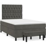 Box spring postelja z vzmetnico temno siva 120x200 cm žametUporabite to box spring posteljo za uživanje v mirnem spancu! Ponuja maksimalno sprostitev in prijeten spanec. Mehak žamet: Žamet je mehka in razkošna tkanina, ki jo prepoznamo po gostem kupu enakomerno rezanih gladkih vlaken. Žametna tkanina ima značilen mehak občutek, zaradi česar je prijetna na dotik.Praktično vzglavje: Vzglavje postelje je nastavljivo po višini po vaših željah. To vzglavje za posteljo vam zagotavlja odlično oporo za hrbet, ko sedite na postelji in berete ali gledate filme.Ležišče z žepkastimi vzmetmi: Vgrajena individualna žepkasta vzmet je znana po zelo visoki kakovosti, hkrati pa zagotavlja visoko stopnjo vzdržljivosti in prilagodljivosti. Lahko učinkovito absorbira hrup in udarce, ki jih povzročata metanje in obračanje.Srednje trda opora: Posteljna vzmetnica odlično zagotavlja dodatno stabilnost in ravno pravšnjo stopnjo čvrstosti, ne da bi pri tem žrtvovala udobje. Zato je idealna za tiste, ki spijo na hrbtu ali trebuhu.Koži prijazen nadvložek: Zaščita za ležišče ima trpežno in koži prijazno tkanino, zaradi česar je mehka in udobna.Večnamenska klop: Ta klop lahko služi kot dodaten sedež v vašem domu. Lahko se uporablja tudi kot zaključek posteljne klopi. Opomba:Zaradi higienskih razlogov vzmetnice ni mogoče vrniti po odstranitvi ali odprtju embalaže.Vsakemu izdelku je priložen priročnik za enostavno sestavljanje.Deine VorteileUporabite to box spring posteljo za uživanje v mirnem spancu! Ponuja maksimalno sprostitev in prijeten spanec.Druge specifikacijePostelja:Barva: Temno sivaMaterial: Žamet (100 % poliester), vezan les, konstruiran lesDimenzije: 203 x 120 x 118/128 cm (D x Š x V)Vzmetnica za