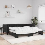 Izvlečna dnevna postelja z vzmetnicami črna 100x200 cm žametTa 2 v 1 izvlečna dnevna postelja, ki služi kot kavč in postelja, je praktičen in privlačen dodatek za vašo dnevno sobo ali spalnico. Vsestranska dnevna postelja: Raztegljiva postelja čez dan deluje kot kavč, ponoči pa se z izvlečenim ležiščem zlahka spremeni v zakonsko posteljo, kar je priročna rešitev za sprejemanje gostov in maksimalno povečanje prostora.Udobna penasta vzmetnica: Ta postelja je opremljena z dvema vzmetnicama iz pene za največjo podporo in optimalno udobje.Mehak žamet in trdna konstrukcija: Ta dnevna postelja ima trpežen okvir iz lesa in kovine ter je oblazinjena z mehkim in udobnim žametom.Sodobno oblikovanje: Kavč postelja ima sodoben dizajn, ki ga odlikujejo čiste linije, minimalističen videz in naravna svetloba, vašim notranjim prostorom pa bo dodal sodoben stil!Deine VorteileTa 2 v 1 izvlečna dnevna postelja, ki služi kot kavč in postelja, je praktičen in privlačen dodatek za vašo dnevno sobo ali spalnico.Druge specifikacijeBarva: ČrnaMaterial: Žamet (100% poliester), kovina, trden lesMaterial prevleke vzmetnice: Kosmatena pleteninaMaterial letvic: Vezan lesMaterial polnila: PenaDimenzije (neraztegnjena): 223 x 110 x 68 cm (D x Š x V)Dimenzije (raztegnjena): 223 x 212,5 x 68 cm (D x Š x V)Dimenzije vzmetnice iz pene (vsaka): 100 x 200 x 10 cm (Š x D x V)Višina naslonjal za roke, od tal: 68 cmVišina nog: 15 cmPotrebno sestavljanje: DaPaket vsebuje:1 x Izvlečna dnevna postelja2 x Vzmetnica iz peneVsebina paketaIzvlečna dnevna postelja z vzmetnicami črna 100x200 cm žamet (1x)Gut to clearIhre Naročilo prejmete v 3 paketih. Upoštevajte, da so tukaj