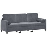 Kavč trosed z okrasnimi blazinami temno siv 180 cm žametTa trosed, ki izstopa s svojim modernim dizajnom in blazinami, bo odlično mesto za klepet, gledanje televizije ali samo sprostitev. Mehak žamet: Žamet je mehka in razkošna tkanina, ki jo prepoznamo po gostem kupu enakomerno rezanih gladkih vlaken. Žametna tkanina ima značilen mehak občutek, zaradi česar je prijetna na dotik.Trden in stabilen okvir: Kovinski okvir sedežne garniture zagotavlja trdnost in stabilnost.Odstranljive prevleke za blazine: Zahvaljujoč zapiranju z zadrgo je prevleke teh blazin enostavno odstraniti in po potrebi očistiti.Udobno sedenje: Kavč je zelo udoben z debelo oblazinjenimi sedeži, nasloni za roke in hrbtnimi blazinami. Poleg tega lahko okrasne blazine zagotovijo dodatno udobje, ko sedite ali ležite.Deine VorteileTa trosed, ki izstopa s svojim modernim dizajnom in blazinami, bo odlično mesto za klepet, gledanje televizije ali samo sprostitev.Druge specifikacijeBarva: Temno sivaKavč trosed:Material: Žamet (100 % poliester), kovina, textileneMaterial polnila: PenaCelotne dimenzije: 198 x 77 x 80 cm (Š x G x V)Širina sedeža: 180 cmGlobina sedeža: 50 cmVišina sedeža od tal: 41 cmVišina naslonjal za roke, merjena od tal: 60 cmMaksimalna nosilnost (na sedež): 110 kgOkrasna blazina:Material: Žamet (100 % poliester)Material polnila: PenaVelikost: 15 x 50 cm (premer x V)Potrebno sestavljanje: DaPaket vsebuje:1 x Kavč trosed2 x BlazinaVsebina paketaKavč trosed z okrasnimi blazinami temno siv 180 cm žamet (1x)Gut to clearIhre Naročilo prejmete v 2 paketih. Upoštevajte, da so tukaj vsebovani