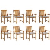Vrtni stoli z blazinami 8 kosov trden akacijev lesS tem kompletom lesenih vrtnih stolov lahko v svoje zunanje prostore vnesete dodatno udobje. Komplet je idealen za klepetanje z družinskimi člani in prijatelji ali pa samo za uživanje na soncu! Ta komplet zunanjih stolov je izdelan iz trdnega akacijevega lesa z oljnim premazom. To je trden les z gostimi vzorci. Robusten akacijev les je dovolj močan za prenašanje teže, poleg tega pa se dobro spopada z obrabo in uporabo. Ta komplet lesenih stolov je stabilen, trpežen in vremensko odporen. Z oljem premazana površina omogoča preprosto čiščenje stolov z vlažno krpo. Priložene blazine nudijo dodatno udobje. Opomba: Da bi podaljšali življenjsko dobo vašega zunanjega pohištva, vam priporočamo, da ga zaščitite z vodoodporno prevleko.Deine VorteileOkrasite svoj zunanji prostor s tem kompletom stilskih vrtnih stolov, ki dodajajo rustikalen čar.Druge specifikacijeMaterial stola: Trden akacijev les z oljnim premazomMaterial blazine: Blago (100 % poliester)Dimenzije stola: 61 x 57 x 92 cm (Š x G x V)Velikost sedeža: 48 x 46 cm (Š x G)Višina sedeža, merjena od tal: 43,5 cmDimenzije blazine: 50 x 50 x 3 cm (D x Š x D)Enostavno vzdrževanjeOdporno na vremenske vpliveS sivim karo vzorcemVsaka blazina ima 2 kompleta vrvicPotrebno sestavljanje: DaPaket vsebuje:8 x Stol8 x BlazinaVsebina paketaVrtni stoli z blazinami 8 kosov trden akacijev les (1x)Gut to clearIhre Naročilo prejmete v 4 paketih. Upoštevajte, da so tukaj vsebovani podatki pakirani v skladu z vašimi željami. V nekaterih primerih pridem do zaključka, da je to mogoče storiti brez nadaljnjega odlašanja. Tisto jesen so ostale zapakirali s posebnim paketom. Najdete