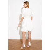 Ženska priložnostna obleka znamke Trendyol. všita zadrga V izrez rokavi zaključeni z robovi zožena na pasu Mere modela: višina: 175 prsi: 81 pas: 60 boki: 89. Izdelek na modelu je velikost S/36. Material : 96% poliester 4% elastan