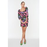 Ženska priložnostna obleka znamke Trendyol. tkanina z vzorcem nabrani rokavi všita zadrga z okrasnim pasom Mere modela: višina: 178 prsi: 82 pas: 62 boki: 89. Izdelek na modelu je velikost S/36. Material: 100% poliester