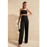 Ženske enobarvne hlače znamke Trendyol. visok pas všita zadrga široke hlačnice udoben kroj Mere modela: višina: 176 prsi: 84 pas: 69 boki: 89. Velikost vzorca: S/36. Material: 5% elastan 95% poliester