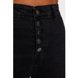 Ženske kavbojke visok pas zanke za pas 2 žepa spredaj 2 zadnja žepa zapenjanje z gumbi Mere modela: višina: 174 prsni koš: 84 pas: 62 boki: 89 Velikost izdelka na modelu: S / 36