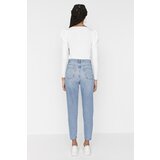 Trendyol ženske kavbojke. visok pas dva stranska in dva zadnja žepa zapenjanje na gumb in zadrgo Mere modela: višina: 176 prsi: 84 pas: 60 boki: 89. Izdelek na modelu je velikost S/36. Material : 100% bombaž