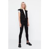 Ženske kavbojke znamke Trendyol. zapenja se z gumbom in zadrgo razrezan rob visok pas kroj: skinny Dimenzije modela: višina: 176 prsi: 84 pas: 60 boki: 89. Izdelek na modelu je velikosti S/36. Material: 97 % bombaž 3 % elastan