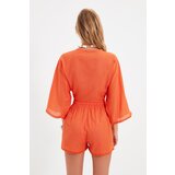 Modni ženski komplet Trendyol. primerno za poletne dni Top vezanje na sprednji strani kroj: crop okrasni rokavi Kratke hlače nastavljiv pas z vrvico elastičen pas Material : 100% bombaž