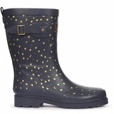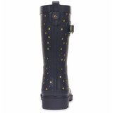 Women's waterproof boots in medium height are both a practical and design addition to your outfit.The decorative buckle is a unique element of the shoe.Durable sole with pattern eliminates slippage.Allover gold print.