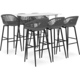 Naša barska garnitura z modernim in sodobnim dizajnom je popolna za moderne domove, vrtove, bare, pube ali restavracije. Cist in sodoben dizajn garniture se bo podal k dekorju v vsakem notranjem prostoru. Površina je izdelana iz mediapana, ki omogoča preprosto čiščenje. Prašno premazan kovinski okvi
