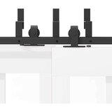 S tem kompletom okovja za drsna vrata lahko preprosto namestite dvojne vodila za par vrat, ki se pomikajo pred in za seboj.