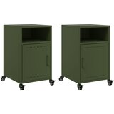 Ti nočni omarici s stilskim dizajnom predstavljata brezčasen dodatek za dekor v vaših notranjih prostorih. Stabilen material: Nočna omarica je izdelana iz hladno valjanega jekla. Hladno valjano jeklo je vrsta nizkoogljičega jekla, ki se proizvaja z metodo "hladnega valjanja" in obdeluje pri skoraj običajnih sobnih temperaturah. Hladno valjano jeklo ima bolj gladko površino, večjo trdnost in natančnost.Veliko prostora za shranjevanje: Ta omarica ponuja priročen prostor za shranjevanje vaših revij, knjig, daljinskih upravljalnikov in drugih majhnih predmetov, da bodo dobro urejeni in na dosegu roke.Enostavno vzdrževanje: Mizico je enostavno očistiti z vlažno krpo, poleg tega ne potrebuje veliko vzdrževanja.Enostavno premikanje: Ta odstavna mizica ima 4 kolesa, ki omogočajo enostavno premikanje in stabilno parkiranje.Praktičen ročaj: Omarici je priložen ročaj, ki olajša odpiranje in zapiranje omare, obenem pa poskrbi za dodatno lepoto.Barva: Olivno zelenaMaterial: Hladno valjano jekloDimenzije: 36 x 39 x 59 cm (D x Š x V)Z 1 vratiZ 2 prostoroma za shranjevanjePotrebno sestavljanje: DaPaket vsebuje:2 x Nočna omarica 846725