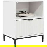• Materialna konstrukcija: Ta nočna omarica je narejena iz kakovostnega inženirskega lesa, kar omogoča gladko površino in trajnost. Jekleni nogi ji dajejo trdno podporo, kar jo naredi še bolj praktično in šik.