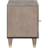 Ta moderna nočna omarica ima pameten videz s svojo mat površino in zlatimi dodatki. Idealna je za vsako spalnico, ki potrebuje eleganten prostor za shranjevanje, saj združuje pameten dizajn s sodobnim pridihom. Super se prilega ob posteljo, njena kompaktna velikost pa zagotavlja optimalno izrabo prostora, brez žrtvovanja funkcionalnosti. Idealna je za shranjevanje lamp ali vaših osebnih dragocenosti. Njena pravokotna oblika pomeni, da se lepo prilega v sodobne notranje sloge ter nudi kanček elegance in miru.