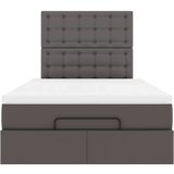 S tem okvirjem za posteljo otoman z ležiščem lahko uživate v mirnem spancu! Ponuja vam rešitev za shranjevanje in udobno spanje. Dolgotrajno in enostavno vzdrževanje: Umetno usnje je zelo trpežen material, ki je odporen na madeže, zato ga zlahka očistite z vlažno krpo. Njegova gladka površina mu daje eleganten videz, ki spominja na pravo usnje.Ležišče z žepkastimi vzmetmi: Ta vzmetnica z žepkastimi vzmetmi ima posamezne žepkaste vzmeti, ki delujejo neodvisno in zagotavljajo prilagojeno podporo, saj se odzivajo le na pritisk na posameznem območju. Takšna zasnova preprečuje, da bi se ležišče "zvijalo skupaj", in zmanjšuje prenos gibanja v primerjavi s tradicionalnimi ležišči z odprtimi vzmetmi. Vsaka žepkasta vzmet podpira telo posebej.Veliko prostora za shranjevanje pod posteljo: Zahvaljujoč hidravličnemu dvižnemu mehanizmu je pod posteljnim okvirjem na voljo veliko prostora za shranjevanje pod posteljo, kar povečuje prostor, ne da bi zavzemal dodatno talno površino. S preprostim potegom ročaja se podnožje z letvami gladko dvigne, tako da lahko hitro in brez napora poberete svoje predmete.Udobna vzmetnica: Ta nadvložek za vzmetnico z mehko in zračno površino poveča podporo in udobje ter hkrati podaljša življenjsko dobo vaše vzmetnice. Odstranljiva prevleka omogoča enostavno pranje, zato je vzdrževanje enostavno.LED osvetlitev za prijeten ambient: To posteljo odlikuje LED osvetlitev, ki jo je mogoče preprosto nastaviti in tako ustvariti posebno svetlobno predstavo. Prilagodite lahko načine, barve in svetlost ter tako izboljšate vzdušje v notranjem prostoru. Dobro je vedeti:Izdelek ima priključek USB, ki zahteva certificiran vir napajanja 5 V USB (ni priložen).Zaradi higienskih razlogov vzmetnice ni mogoče vrniti po odstranitvi ali odprtju embalaže.Režete lahko samo del s simbolom škarij in samo del z USB bo deloval kot prej.Posteljni okvir z vzglavjem:Barva: SivaMaterial: Umetno usnje (75 % polivinilklorid, 5 % bombaž, 20 % poliester), kovina, vezan les, konstruiran lesCelotne dimenzije: 193 x 120 x 78/88 cm (D x Š x V)Maks. nosilnost: 280 kgShranjevanje pod posteljoHidravličen dvižni mehanizemPotrebno sestavljanje: DaVzmetnica:Barva: Bela in sivaMaterial: Umetno usnje (75 % polivinilklorid, 5 % bombaž, 20 % poliester)Material polnila: Žepkaste vzmeti, penaTrdnost: SrednjaDimenzije: 120 x 190 x 20 cm (Š x D x V)Nadvzmetnica:Barva: BelaMaterial: Blago (100 % poliester)Material polnila: PenaDimenzije: 120 x 190 x 5 cm (Š x D x V)Odstranljiva in pralna prevlekaLED trak:Dolžina: 55 cmNapetost: DC 5 VDolžina kabla USB : 150 cmDolžina električnega kabla: 30 cmIP ocena: IP65S simbolom za rezanje s škarjamiPaket vsebuje:1 x Posteljni okvir2 x Vzglavje1 x Vzmetnica1 x Nadvložek1 x LED trak 3313843 Odgovorna stranka EU Haba Trading B.V. Mary Kingsleystraat 1 5928SK Venlo The Netherlands Compliancesafety@vidaxl.com