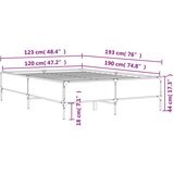 Zagotovite si boljši spanec s tem posteljnim okvirjem! Je prijeten dodatek za vsako spalnico. Vzdržljiv material: Inženirski les se ponaša z izjemno kakovostjo, gladko površino ter močjo, stabilnostjo in odpornostjo na vlago. Kovinske noge: Postelja je podprta s čvrstimi kovinskimi nogami, ki zagotavljajo njeno stabilnost, varnost in trdnost. Letvice iz vezanega lesa: Letvice iz vezanega lesa omogočajo dobro porazdelitev teže in zagotavljajo, da vzmetnica ostane na mestu ob vsakem zasuku in obračanju med spanjem. Dobro je vedeti: Vzmetnica ni priložena tej postelji. Ponujamo različno izbiro ležišč. V naši trgovini si lahko ogledate ustrezne vzmetnice.Barva: ČrnaMaterial: Inženirski les, jekloCelotne dimenzije: 193 x 123 x 44 cm (D x Š x V)Velikost primerne vzmetnice: 120 x 190 cm (Š x D) (vzmetnica ni priložena)Potrebno sestavljanje: Da