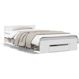 vidaXL Posteljni okvir s predalom bel 100x200 cm inženirski les, (21216165)