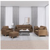 Ta sedežna garnitura je odlična za klepet, branje, gledanje televizije ali samo sprostitev. Postala bo osrednja točka vašega doma. Trpežno blago: Tkanina je preprostega in čistega videza, hkrati pa diha in ima dolgo življenjsko dobo. Trden in stabilen okvir: Vezan les in kovinski okvir oblazinjenega