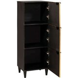 Lesena stranska omarica je idealno stilsko mesto za vse vaše drobnarije v modernih bivalnih prostorih. Narejena je iz trdnega mangovega lesa in inženirskega lesa ter ima osupljiv črnozlat dizajn, ki se super prilega vsaki šik dnevni sobi. Ne glede na to, ali želite pokazati svoje dekorativne predmete ali skriti vsakdanje stvari, vas ta omarica zagotovo ne bo razočarala.