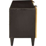 Ta trdna lesena TV omara je točno to, kar rabiš za pametno in funkcionalno shranjevanje medijev. S svojim modernim dizajnom in lepo črnozlato kombinacijo se brez težav vklopi v sodobne interierje. Idealna je za katerokoli dnevno sobo, saj ponuja tako stil kot praktično shranjevanje tvoje tehnike in dodatkov.