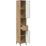 Ta visoki kabinet za kopalnico je stilska in pametna rešitev za tvoje shranjevanje. Čiste linije in preprost dizajn se odlično podajo v katero koli kopalnico, poleg tega pa ponujajo dovolj prostora za vse tvoje stvari. Enostavno se prilega sodobnim domovom, kar ti daje praktičnost brez žrtvovanja stila. Visoka in ozka oblika je super za izkoriščanje navpičnega prostora, kar je idealno za manjše kopalnice ali vse, kjer želiš prihraniti prostor na tleh.