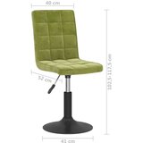 Ti vrtljivi jedilni stoli s stilskim in modernim dizajnom so praktičen dodatek za vaš bivalni prostor. Ti stoli so oblečeni v mehak žamet, zato zagotovljajo optimalno udobje med sedenjem. Omogočajo uživanje v večerjanju, branju in počivanju v dnevni sobi. Črn prašno premazan jeklen okvir zagotavlja visoko trdnost. Zahvaljujoč plinskemu dvižnemu mehanizmu je sedež nastavljiv po višini. Sedež se tudi vrti za 360 stopinj ter zagotavlja odlično fleksibilnost.Barva: Svetlo zelenaMaterial: Jeklo, žamet (100 % poliester)Material polnila: PenaCelotne dimenzije: 40 x 52 x (102,5 117,5) cm (Š x G x V)Premer osnove: 41 cmVrtenje za 360 stopinjPlinski dvižni mehanizemPotrebno sestavljanje: DaPaket vsebuje:2 x Jedilni stol