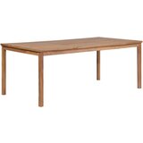 Ta trdna lesena jedilna miza s premazom na vodni osnovi bo vaši kuhinji, vrtu ali terasi dodala naraven šarmanten pridih. Ta kos pohištva iz izjemno trpežne tikovine je bil izpostavljen vremenskim vplivom, sušen v peči in nato fino brušen za pridobivanje gladkega izgleda. Tikovina je znana po svoji izjemni moči in odpornosti na vremenske vplive, zato je izmed vseh vrst lesa najbolj primerna za vrtno pohištvo. Tikovina je popolna izbira, če želite kupiti dolgotrajen kos vrtnega pohištva. Čudovit premaz na vodni osnovi je dodan zato, da daje lesu toplo barvo. Zahvaljujoč izjemno debeli površini mize (3 cm) in velikim nogam (5x5 cm) je ta miza iz trdnega lesa precej trpežna in lahko udobno namesti vaše goste. Miza je vodoodporna in klasična, zato jo boste lahko postavili kamorkoli v vašem prelepem domu v notranje prostore ali ven! Naša miza je preprosta za sestavo. Barva: Naravna Material: Trdna brušena tikovina s premazom na vodni osnovi Dimenzije: 200 x 100 x 77 cm (D x Š x V) Debelina okvirja mize: 28 mm (toleranca +/ 2 mm) Debelina miznih letvic: 12 mm (toleranca (+/ 2mm) Velikost nog mize: 5 x 5 cm (Š x G) Primerno za uporabo v notranjih prostorih in na prostem