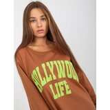 Light brown and green long sweatshirt with a . Product code: VIBL3102.01PDominant pattern: printStyle: Casualoccasion: everyday, for the city, for a walk The model is wearing one size. Model's measurements: height 163 cm, bust 86 cm, waist 56 cm, hips 88 cm. Measurements of the one size sweatshirt measured flat: armpit width 65 cm, sleeve length 58 cm, total length (front) 75 cm, total length (back) 86 cm.