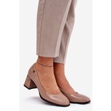 Elegant women's pumps by Vinceza, made from natural patent leather. Set on a block heel, they provide stability and comfort all day long. The toes are gently rounded, adding a subtle elegance to the shoes. The leather insole guarantees comfort and proper cushioning. These pumps will be an excellent choice for elegant outings, suitable for dresses, skirts, or trousers alike. When choosing a size, please refer to the size chart.