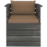 Vrtni naslanjač z blazinami borovinaTa modni vrtni kavč z blazinami je izvrstna izbira za sproščanje in uživanje v lepem vremenu, za počitek ali pogovor z vašo družino ali prijatelji. Lesen kavč ima brezčasen dizajn iz palet, vaši terasi, vrtu ali dnevni sobi pa bo dodal pridih rustikalnega šarma.Zunanji sedež je izdelan iz trdne borovine, zato je trpežen in stabilen. Ta kavč ima trdno konstrukcijo ter ne potrebuje veliko vzdrževanja. Zahvaljujoč oblogi iz 100 % poliestra in debeli podlogi so blazine mehke in zelo udobne. Ta sedež je idealen za družinske filmske večere, igranje video iger in uživanje v lepem vremenu na terasi. Ta sedež za teraso je modularen, zato je popolnoma fleksibilen in preprost za premikanje naokrog. Kombinirate ga lahko z drugimi modularnimi segmenti ter tako ustvarite vrtno sedežno garnituro po svojem okusu!Prosimo, upoštevajte: Les je naraven izdelek, na katerem so lahko vidne nepopolnosti.Deine VorteileSprostite se in uživajte v svojem zunanjem ali notranjem bivalnem prostoru s tem modnim enosedom iz palet! Ta vrtni kavč je izdelan iz trdne borovine, priložene pa so tudi udobne blazine.Druge specifikacijeBarva blazine: TaupeMaterial: Trdna borovina, blago (100 % poliester)Dimenzije naslanjača: 70 x 65 x 71,5 cm (Š x G x V)Dimenzije blazine za sedež: 60 x 60 x 6 cm (Š x G x V)Dimenzije blazine za hrbet: 60 x 38 x 13 cm (Š x G x V)Potrebno sestavljanje: DaPaket vsebuje:1 x Kavč1 x Blazina za sedež1 x Blazina za hrbetVsebina paketaVrtni naslanjač z blazinami borovina (1x)Gut to clearIhre Naročilo prejmete v 2 paketih. Upoštevajte, da so tukaj vsebovani podatki pakirani v skladu z vašimi željami. V nekaterih primerih pridem do zaključka, da je to mogoče storiti brez nadaljnjega