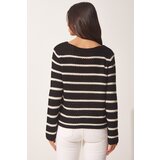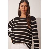 Women's Black Striped Openwork Knitwear Sweater cene