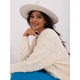 The model is wearing one size. Model's measurements: height 173 cm, bust 89 cm, waist 65 cm, hips 91 cm. Measurements of the one size sweater measured flat: armpit width 62 cm, sleeve length 60 cm, total length 69 cm.