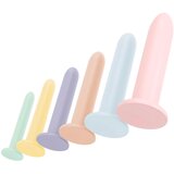 Komplet dilatatorjev, posebej zasnovan za razširitev nožnice, spolno zdravje in samozavest. Dilatatorji različnih dolžin in debelin za vsestransko zdraviloza raztezanje nožnice kot zdravilo, ki vam omogoča večjo zmogljivost za spolno zdravje. Zakaj je dober? Zasnovan za razširitev nožnice za spolno zdravje v primeru bolečih spolnih odnosovLahko pomaga pri vaginizmu ali pretirani napetosti vaginalnih mišic pomaga odpraviti nelagodje med spolnim odnosomV primeru perinealnega reza ali brazgotinjenja perinealnega šiva vam lahko pomaga pri uživanju v spolnem odnosupo ginekološkem posegu za zmanjšanje velikosti nožnicelahko pomaga obnoviti zdravo dilatacijoDilatatorji različnih dolžin in debelin postopna dilatacijaVsak se konča z bazo vstavite ga lahko v spodnji del dilatacijskega traku, uporablja se lahko tudi analnoZdravljenje lahko privede do trajne dilatacije udobnega spolnega odnosaPamper ne vsebuje električnih delov, zato je popolnoma vodoodporen, izjemno enostaven za čiščenjeEnostavno razločevanje v pastelnih barvah vsaka barva označuje različno debelino Bodite pozorni na to: O uporabi se obvezno najprej posvetujte z zdravnikom!Vedno začnite širiti z najmanjšim dilatatorjemNe izvajajte ga na silo, uporabljajte ga počasi, kot zdraviloZa mazanje uporabljajte samo lubrikant na vodni osnovi Uporabljajte: Pred uporabo kompleta vaginalnega dilatatorja se obvezno posvetujte s svojim zdravnikom ali ginekologom! Najprej ustvarite okolje, v katerem se lahko sprostite, nato pa se poskušajte psihično naravnati na uporabo izdelka. Sprostitev je zelo pomembna! Poskrbite, da vas med uporabo nihče ne bo motil! Predlagana praksa: Pred uporabo se prepričajte, da ste izdelek očistili.Zavzemite udoben sedeč ali ležeč položaj z udobno nizko držoVadbo začnite z najmanjšim razširjevalcem rokavov!Na razširjevalnik in vaginalno odprtino nanesite lubrikant na vodni osnovi.Mirno dihajte, nato pa nežno in počasi potisnite dilatator v nožnico.Potiskajte le toliko časa, dokler se ne počutite udobno in ne neprijetno.Dilatator nekaj minut držite v nožnici ali na vhodu v nožnico, kjer se bolje počutite.Začnite premikati dilatator naprej in nazaj, vendar je pomembno, da dilatatorja ne izvlečete do konca!Petkrat zapored nežno in počasi izvlecite in potisnite dilatator, nato pa pripomoček premikajte s krožnimi gibi, najprej od desne proti levi, nato od leve proti desniGibanje ponovite 34krat, da se vaginalna stena lažje razširiKo končate, zelo počasi izvlecite dilatator in se za nekaj minut sprostiteKo se najmanjši dilatator zlahka premika v vas, je vaša vaginalna stena pripravljena za sprejem večjega dilatatorja.Enake gibe ponavljajte z večjimi dilatatorji, dokler se ne počutite dovolj razširjeneVaje za raztezanje je treba izvajati 24krat na teden Dimenzije:Zelena: skupna dolžina 12 cm, dolžina vstavljanja 11,5 cm, premer največ 1,8 cm, teža 35 g.Rumena: skupna dolžina 13,2 cm, dolžina vstavljanja 12,4 cm, premer največ 2,3 cm, teža 67 gVijolična: skupna dolžina 13,7 cm, dolžina vstavljanja 13 cm, premer največ 2,5 cm, teža 82 gOranžna: skupna dolžina 14,7 cm, dolžina vstavljanja 14 cm, premer največ 2,8 cm, teža 107 gModra: skupna dolžina 16 cm, dolžina vstavljanja 15 cm, premer največ 3,2 cm, teža 154 gRoza: skupna dolžina 17 cm, dolžina vstavljanja 16 cm, premer največ 3,7 cm, teža 223 g Specifikacije izdelka: Sklop 6 dilatatorjevza vaginalno in analno uporaboz različno debelino in dolžinos podstavkom na koncubarve: zelena, rumena, vijolična, oranžna, modra, rožnatamaterial: silikon, PU (v skladu z zahtevami EU, brez ftalatov) Predlog za čiščenje: Pooblaščena uporaba: temeljito operite z blago milo mlačno vodo, sperite in pustite, da se posuši. Priporočamo: uporabite posebno čistilno sredstvo (06302500000) na voljo ločeno.