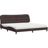 Postelja z vzmetnico temno rjava 200x200 cm blagoS to posteljo z vzmetnico si zagotovite bolj miren spanec! Je prijeten dodatek za vsako spalnico. Trpežno blago: Blago zagotavlja preprost in čist videz, poleg tega pa je zračno in trpežno.Letvice iz vezanega lesa: Letvice iz vezanega lesa omogočajo dobro porazdelitev teže in zagotavljajo, da vzmetnica ostane na mestu ob vsakem zasuku in obračanju med spanjem.Udobna opora: To vzglavje za posteljo vam zagotavlja odlično oporo za hrbet, ko sedite na postelji in berete ali gledate filme.Vzmetnica iz pene: Za optimalno udobje je ta triplastna vzmetnica iz tkanine napolnjena z 22D PU peno. Pomaga lajšati utrujenost in spodbuja krvni obtok ter zagotavlja popolno sprostitev in kakovosten spanec. Poleg tega je vzmetnica na voljo v trdotah H2 in H3, tako da jo lahko preprosto obrnete in izberete trdoto, ki vam najbolj ustreza.Valovita stranica: Valoviti videz posteljnega okvirja je eleganten in prefinjen. Dekorju v vašem domu dodaja sodoben in eleganten pridih ter tako postane osrednja točka spalnice.Deine VorteileS to posteljo z vzmetnico si zagotovite bolj miren spanec! Je prijeten dodatek za vsako spalnico.Druge specifikacijePosteljni okvir:Barva: Temno rjavaMaterial: Tkanina (100 % poliester), kovina, trdna borovina, vezan lesCelotne dimenzije: 218 x 205 x 74,5 cm (D x Š x V)Oblazinjeno vzglavje:Barva: Temno rjavaMaterial: Blago (100 % poliester)Material polnila: PP vlaknaDimenzije: 210 x 15 x 48 cm (D x Š x V)Vzmetnica iz pene:Barva: Bela Material prevleke: Pletenina Material polnila: 22D PU pena Trdota: H2 in H3 Celotne dimenzije: 200 x 200 x 17 cm (Š x D x D)Potrebno sestavljanje: