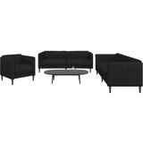 Sedežna garnitura 3delna črno blagoTa sedežna garnitura je odlična za klepet, branje, gledanje televizije ali samo sprostitev. Postala bo osrednja točka vašega doma. Trpežno blago: Blago zagotavlja preprost in čist videz, poleg tega pa je zračno in trpežno. Udobna izkušnja sedenja: Sedež, nasloni za roke in naslonjalo za hrbet so debelo oblazinjeni in zelo udobni. Podporne noge: Fotelj je podprt s čvrstimi nogami, ki zagotavljajo njegovo stabilnost, varnost in trdnost. Privlačen dizajn: To sedišče za dnevno sobo s preprostim, a modernim dizajnom bo privlačen dodatek za vaš prostor.Deine VorteileTa sedežna garnitura je odlična za klepet, branje, gledanje televizije ali samo sprostitev. Postala bo osrednja točka vašega doma.Druge specifikacijeBarva: ČrnaMaterial: Tkanina (100 % poliester), vezan les, trden lesMaterial polnila: PenaMaksimalna nosilnost (na sedež): 110 kgPotrebno sestavljanje: DaFotelj:Celotne dimenzije: 69 x 76,5 x 74,5 cm (Š x G x V)Širina sedeža: 55 cmGlobina sedeža: 58 cmVišina sedeža, merjena od tal: 42,5 cmVišina naslonjal za roke, merjena od tal: 69 cmKavč dvosed:Celotne dimenzije: 176 x 76,5 x 74,5 cm (Š x G x V)Širina sedeža: 159 cmGlobina sedeža: 58 cmVišina sedeža, merjena od tal: 42,5 cmVišina naslonjal za roke, merjena od tal: 69 cmKavč trosed:Celotne dimenzije: 193 x 76,5 x 74,5 cm (Š x G x V)Širina sedeža: 178 cmGlobina sedeža: 58 cmVišina sedeža, merjena od tal: 42,5 cmVišina naslonjal za roke, merjena od tal: 69 cmPaket vsebuje:1 x Fotelj1 x Kavč dvosed1 x Kavč trosedVsebina